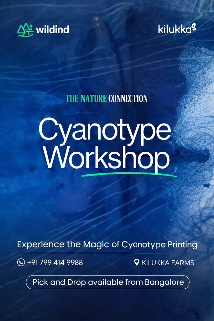 📍 Kilukka Farms, Shoolagiri – Near Bangalore Discover the unique art of Cyanotype printing, where sunlight, natural elements, and creativity come together to create beautiful
