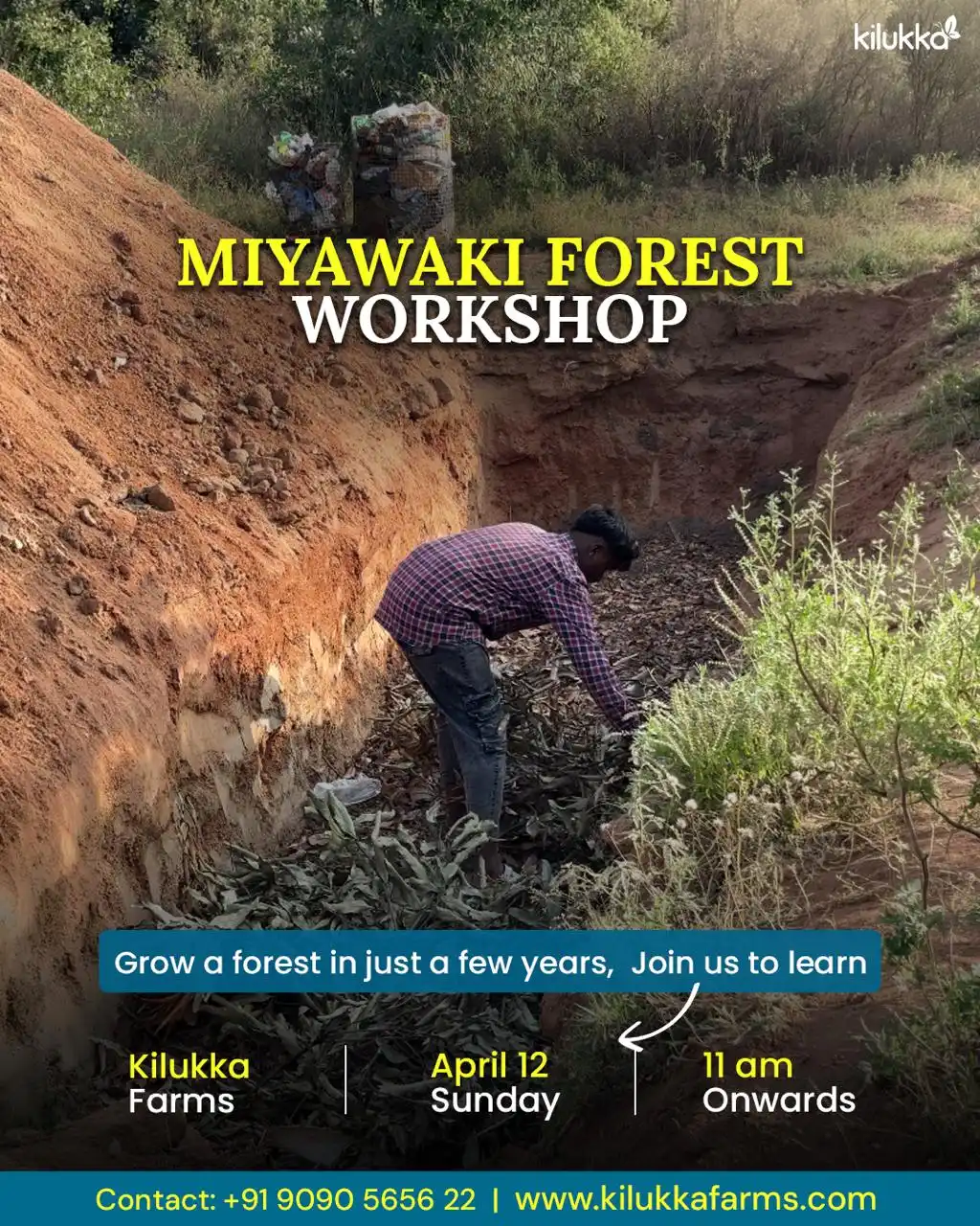 Miyawaki Forest Workshop at Kilukka Farms 📍 Kilukka Farms, Shoolagiri – Near Bangalore The Miyawaki Forest Workshop at Kilukka Farms introduces participants to the powerful
